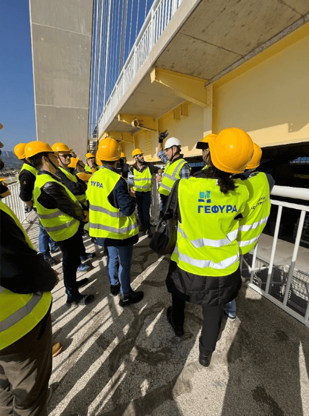 Τεχνική επίσκεψη στον πυλώνα Μ4 όπου παρουσιάστηκε ο σημαντικότερος δομικός εξοπλισμός της γέφυρας (καλώδια σύστημα απόσβεσης, αρμοί καλωδιωτής γέφυρας και γεφυρών πρόσβασης, κατάστρωμα, σύστημα εγκάρσιας στήριξης και απόσβεσης καταστρώματος, Σύστημα Δομικής Παρακολούθησης- SHMS).